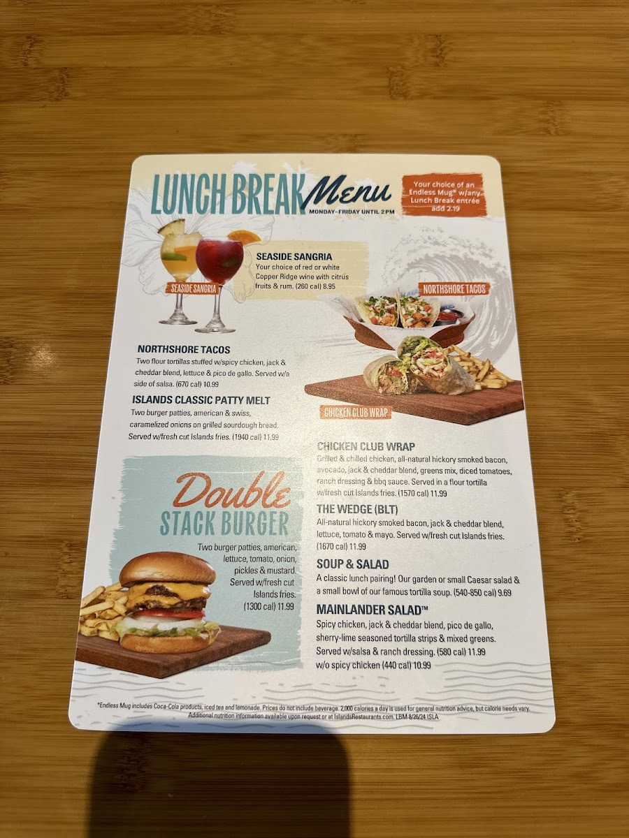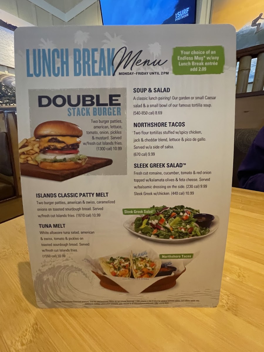 Two burger patties, american & swiss, caramelized onions on toasted sourdough bread. Served with fresh cut Islands fries.